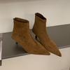 Modne Szpiczaste Obuwie Niskie Obcasy Damskie Kostkę Nowoczesne Buty Damskie Zamki Moda Welur Damskie Krótkie Buty Szpilki Buty