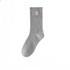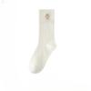 Female Spring and Autumn Bear Embroidery Bow Boneless Sweat Absorption Breathable Solid Color Tube Cotton Socks