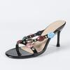 Fashion Liyke Summer Fashion Colour Gem Strap Women Slippers Sandals Round Open Toe Thin High Heels Mules Slides Summer Party Dress Shoe