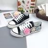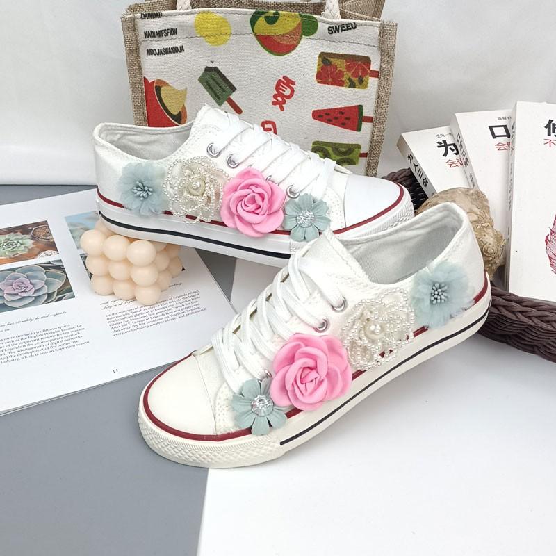Moda 2025 Damskie płócienne buty modowe Nowy styl Sznurowane Buty codzienne z niską cholewką z kwiatem z cyrkonii do dojazdów Wygodne buty