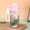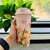 Konwalia ze stali nierdzewnej izolowany kubek podróżny - Damski kubek do kawy i wody z podwójnym dnem, Nadruk o wysokiej wartości