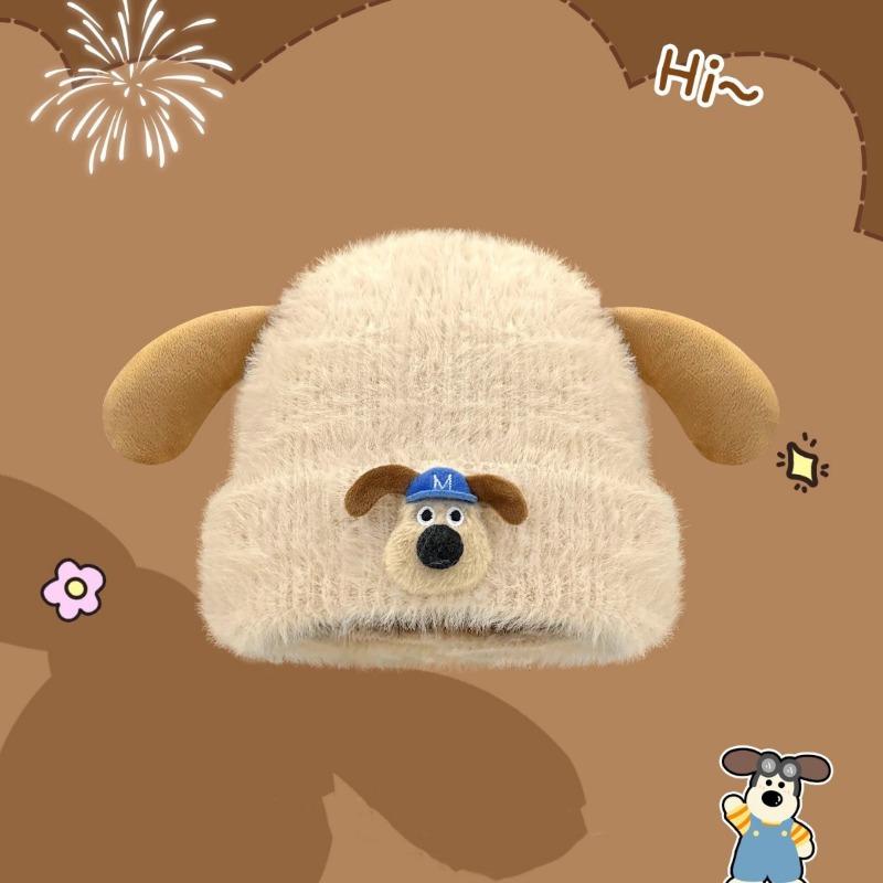 Cute and sweet cartoon puppy plush hat female autumn and winter thickened warm wool knitted hat bag head ear protection hat