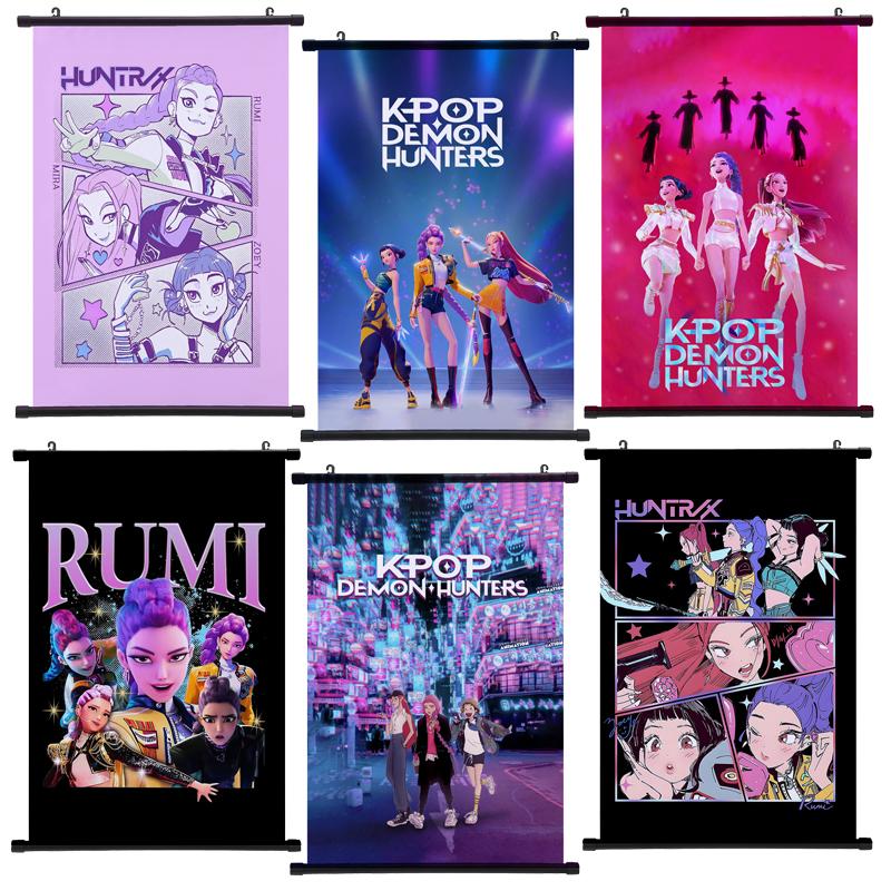KPop Łowcy Demonów Plakat Obraz do Zawieszenia Huntrix Girl Zoey Rumi Mira Saja Chłopcy Kpop Wystrój Domu Plakat Zwój Ścienny