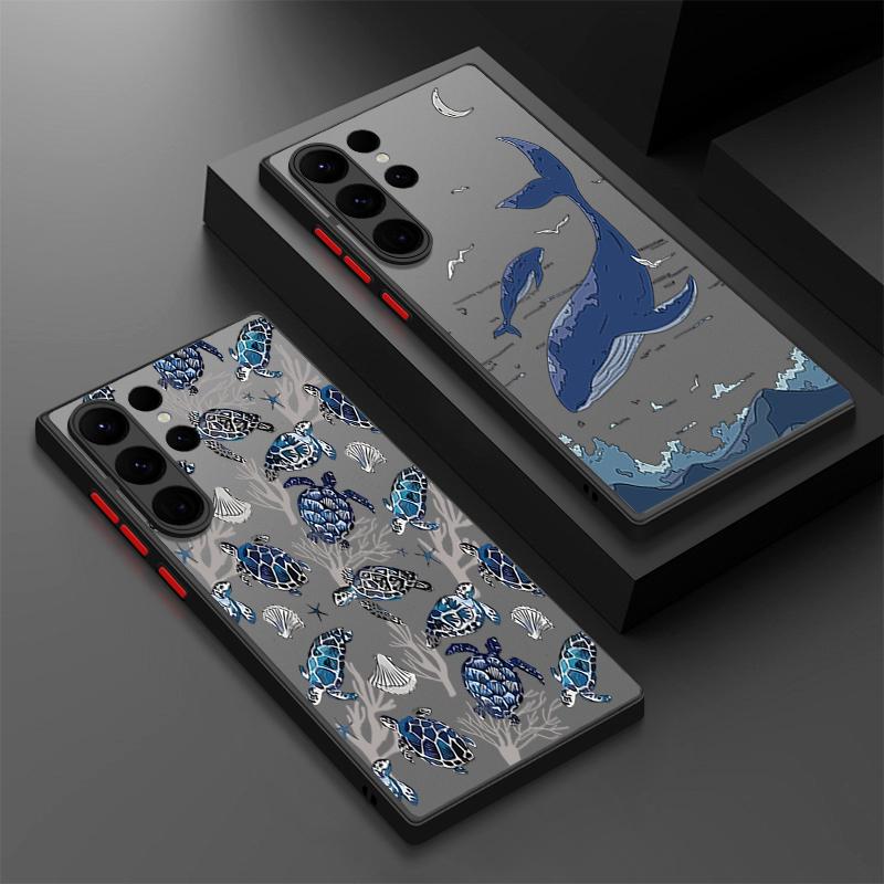 Wzorzyste etui na telefon ze zwierzętami oceanicznymi dla Samsunga S25 S24 Fe S22 Plus Ultra S23 S21 A56 A36 A55 A16 A54 A35 A52 A25 A15 A14 5g A32 4g Matowe twarde etui
