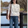 Autumn and winter solid color embroidered front shoulder long-sleeved knitted cardigan women's loose short outer sweater jacket