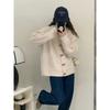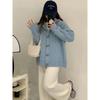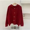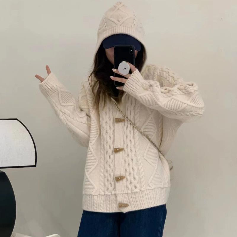 Vintage horn buckle hooded sweater jacket cardigan women's thickened autumn and winter loose lazy wind knitted sweater top