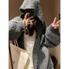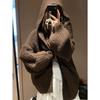 Hooded sweater jacket women's autumn and winter loose lazy wind soft waxy medium and long knitted cardigan top women