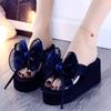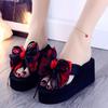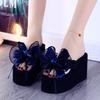 Fashion Women's 8CM Slope Heel Slippers Thick Bottom Increased Bow Casual Non slip Slippers Summer High Heels Pinch Foot Beach Slippers