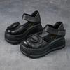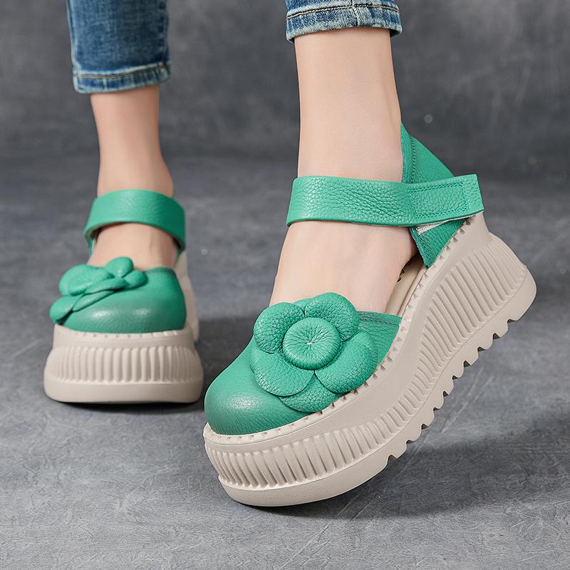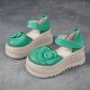 Modne sandały GKTINOO Retro z okrągłym noskiem i grubą podeszwą 2025 Lato Nowe Damskie buty na płaskiej platformie, codzienne, z kwiatami, z prawdziwej skóry