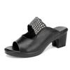 Fashion GKTINOO Women Slipper's 2024 Ladies Summer Slippers Shoes Women High Heels Fashion Rhinestone Summer Shoes Genuine Leather