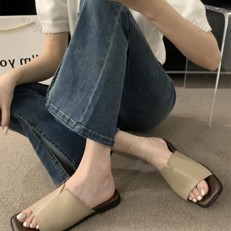 Fashion Women's Summer Slippers 2025 New Luxury Elegant PU Leather House Shoes for Home Women Comfortable Barefoot Outdoor Sandals