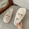 Modne Zimowe Ciepłe Pluszowe Mule Damskie Jednopaskowe Futrzane Kapcie Przytulne Bawełniane Buty Kobieta Płaskie Zakryte Palce Polary Klapki Femme Wełniane Pantofle