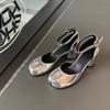 Moda Moda Rozdzielony palec Lakierowana skóra Tabi Damskie czółenka Lato Jesień Pasek na kostce Mary Janes 6cm Gruby wysoki obcas Buty dla dziewcząt studentek