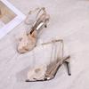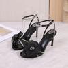 Modne Damskie Sandały na 8cm Wysokim Obcasie Sandały z Jednym Paskiem Sandały z Kokardą z Cyrkonii Buty na Wysokim Obcasie Szpilki Designerskie Sandalias De Mujer