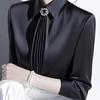 Satynowe Bluzki Damskie Koreańskie Koszule Biurowe Luźne Wiosna Lato Odzież Vintage Jednolite Długi Rękaw Damskie Top Bez Klapy Biżuteria
