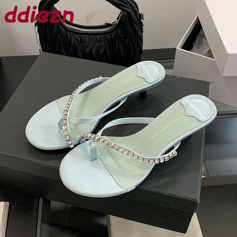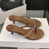 Fashion Female Low Heel Flip flops Slides Slippers Shoes For Women Luxury Fashion Rhinestones Ladies Heeled Slippers Sandals Shoes Pumps
