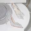 Moda Damskie Czółenka But Kopciuszek Cyrkonie Wysokie Obcasy Kobiety Szpiczasty Nosek Kokarda But Kryształowe Buty na Imprezę Ślubne Zapatillas Mujer