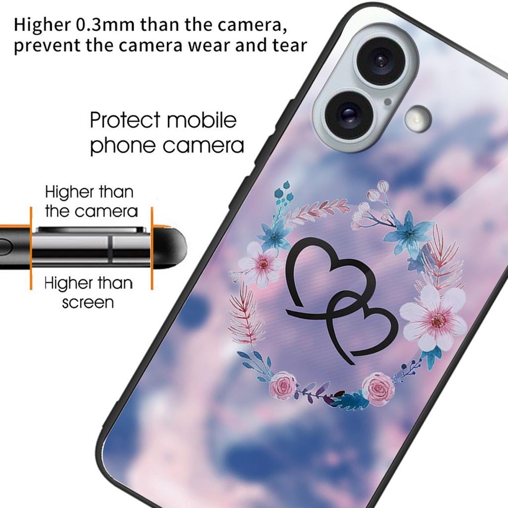 Etui na iPhone 16 Plus z nadrukiem wzoru, wstrząsoodporne, TPU, pokrowiec na telefon, tył ze szkła hartowanego