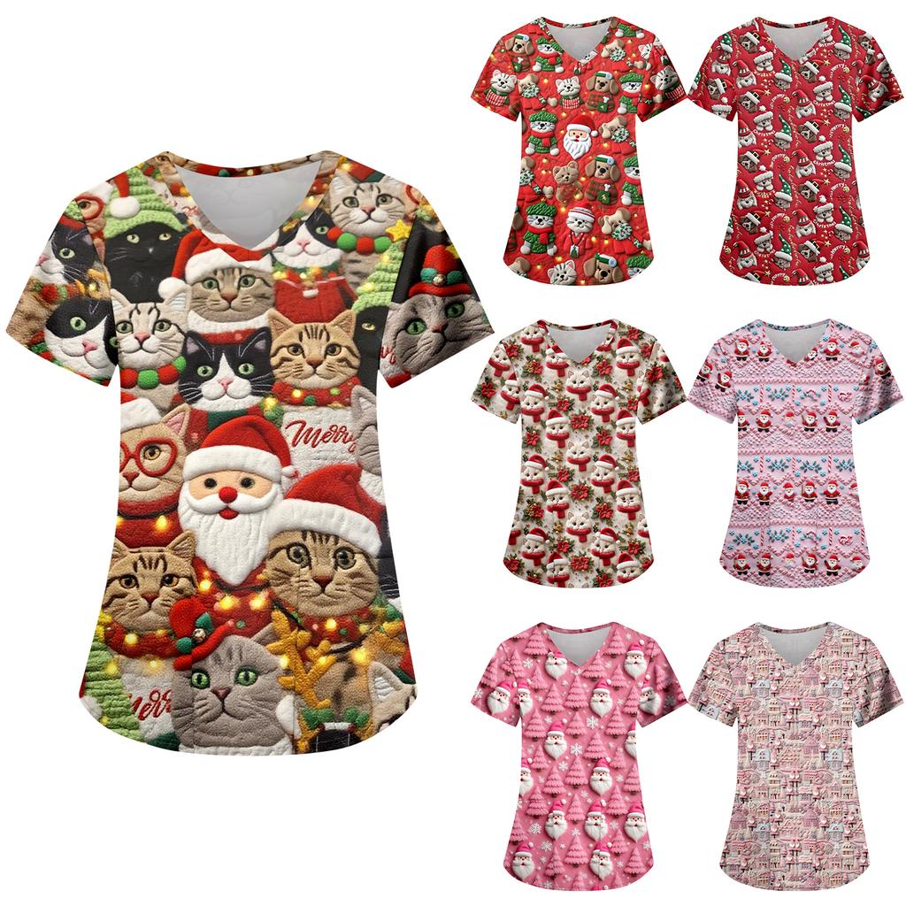 Damska Modna Codzienna Koszulka z Kieszenią i Świątecznym Nadrukiem