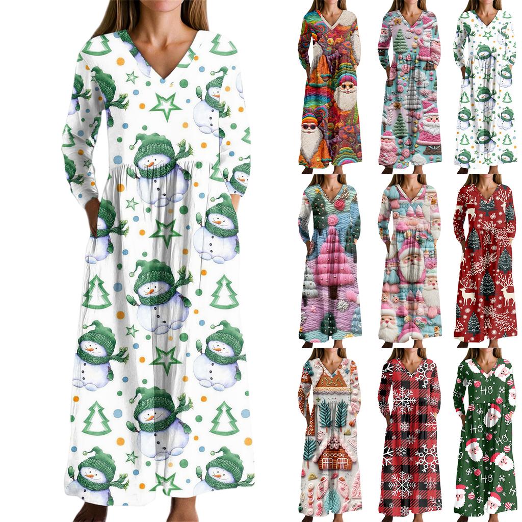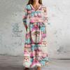 Damska Sukienka Modowa Wiosenna Sukienka z Dekoltem V i Długim Rękawem