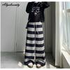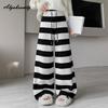 Koreańska Moda Jesień Zima Damskie Spodnie z Szerokimi Nogawkami Wysoki Stan Sznurek Paski Dzianina Podstawowe Spodnie Streetwear Ciepłe Spodnie Dzianinowe