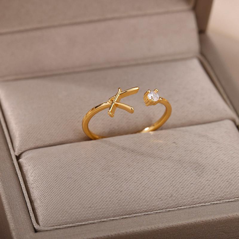 Mini Pierścionki z Inicjałami z Cyrkonii dla Kobiet Otwierany Pierścionek ze Stali Nierdzewnej w Kolorze Złotym Obrączka Ślubna Prezent z Cyrkonii Darmowa Wysyłka