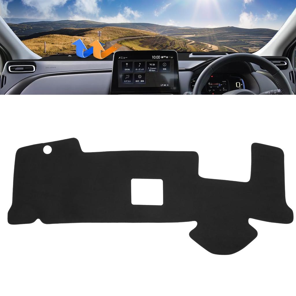 Cartist Dashboard Mat and Cover for the New Aqua (2nd Generation, MXP Series) (2021-Present Models) with Head-Up Display (HUD). Specifically designed for vehicles with head-up displays (HUD), this dashboard protector provides anti-glare and sun protection. Heat-resistant and durable, it provides a clear view. This interior accessory is made of suede and is available in a single black set.
