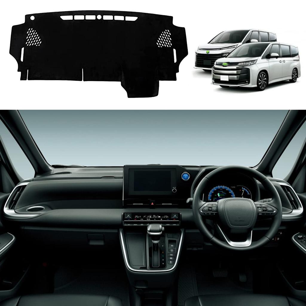 Dashboard mat compatible with: Toyota New Voxy/Noah 90 Series (without head-up display) Model Year: January 2022 - Present - Prevents overheating on the dashboard and reduces interior temperature on hot days - Reduces damage from strong UV rays and direct sunlight, preventing deterioration and protecting the dashboard - Reduces glare from the sun, ensuring visibility and a safer driver