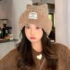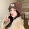 Fashionable and Versatile Patch Plush Knitted Hat Korean Casual Windproof Warm Hat Big Head Surround Women's Hat
