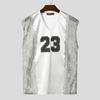 INCERUN Męskie topy bez rękawów z dekoltem w serek, wykończone koronką, z naszywkami z literami, patchworkowe, casualowe podkoszulki