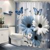 Rustic Sunflower Daisy Shower Curtain Butterfly Floral Vintage Country Farmhouse Flower Wooden Board Waterproof Bathroom Curtain