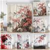 Kwiaty w stylu japońskim Ptak Zasłona prysznicowa Abstrakcyjna góra Czerwony kwiatowy Roślina Sztuka tuszem Krajobraz Tkanina Dekoracja Zasłony łazienkowe