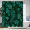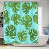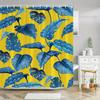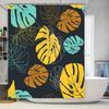 Blue Pattern Shower Curtain Home Decor Waterproof Bathroom Liner for Bathtub Tropical Leaves with Yellow Flowers Design (180x205