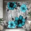 1 Hummingbird Floral Shower Curtain-Vivid white and light blue flowers with black swirling vines, 70x70 inches, polyester fabric