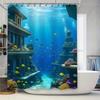 Zestaw zasłony prysznicowej 3D Życie oceaniczne Nurkowanie Dekoracja podwodnego świata do łazienki Wodoodporne zasłony z tkaniny z nadrukiem z haczykami (1