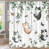 Wodoodporny Poliestrowy Parawan Kąpielowy - Nadruk Cyfrowy, Można Prać w Pralkce z Haczykami, Ekscentryczne Motywy Kota i Roślin
