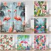 Zestaw zasłony prysznicowej Flaming Różowy Ptak Liście Tropikalne Dżungla Deszczowa Wystrój Łazienki Wiosna Lato Mata Łazienkowa Pokrywa Deski Sedesowej