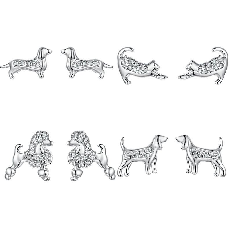 Mini Kolczyki Sztyfty Kotek Szczeniak Pies, Urocze Zwierzę Jamnik Pies Srebro Próby S925 Kolczyki Sztyfty.