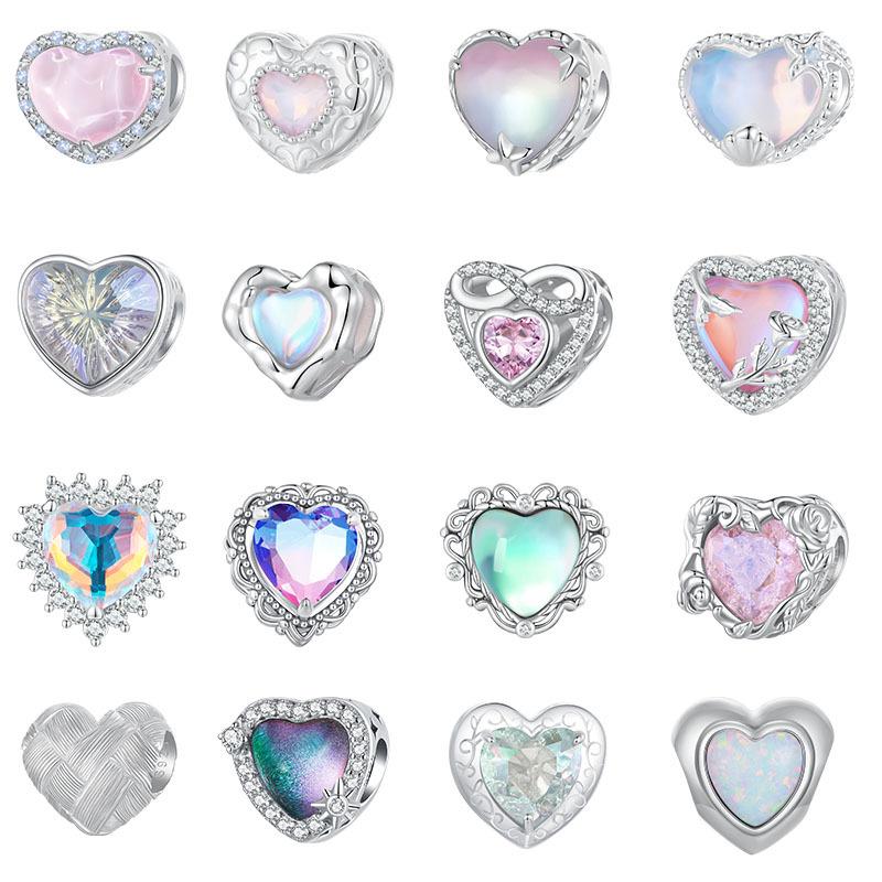 S925 Sterling Silver Love Beads Loose Beads, Dream Colorful Diy Heart Beaded Jewelry Accessories