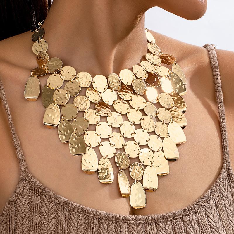 Metalowy cekinowy geometryczny przesadzony wisiorek naszyjnik łańcuszek kobiety dziewczęta biżuteria imprezowy prezent