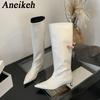 Aneikeh New Brown2026 Fashion Luxury Pointed Toe Ladies Long Knee Women Modern Boots Female Shoes Kitten Heels Western Boots