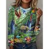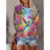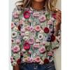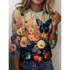 Vibrant Floral Print Long Sleeve Crew Neck T-shirt - Soft, Breathable, Casual Top for Spring & Fall - Women's Comfortable Clothing for Everyday Wear