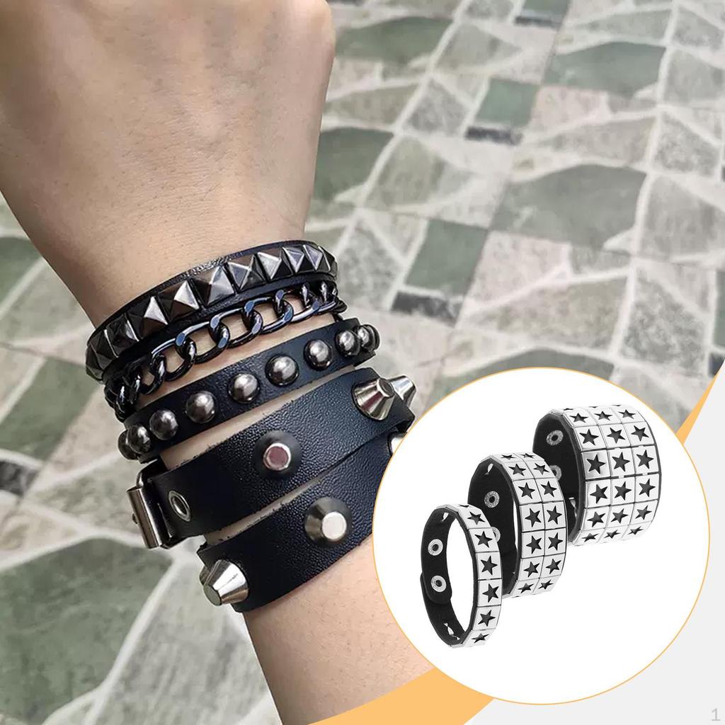- 【Produkt】:Te punkrockowe bransoletki z odważnymi nitami w kształcie gwiazd i kwadratów na klasycznej sztucznej skórze, dodatek dla każdego, kto lubi punk, goth, emo, rock i awangardową modę uliczną.. Wyraź siebie i pokaż swoją unikalną osobowość