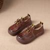 The first layer of cowhide loafers for women's spring and autumn new leather Brock British style retro flat-bottomed lace-up single shoes for women