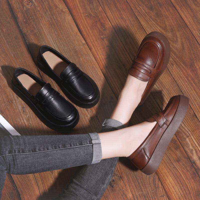 The first layer of cowhide loafers for women's spring and autumn 2025 new one-pedal single shoes with soft soles, retro British style small leather sh