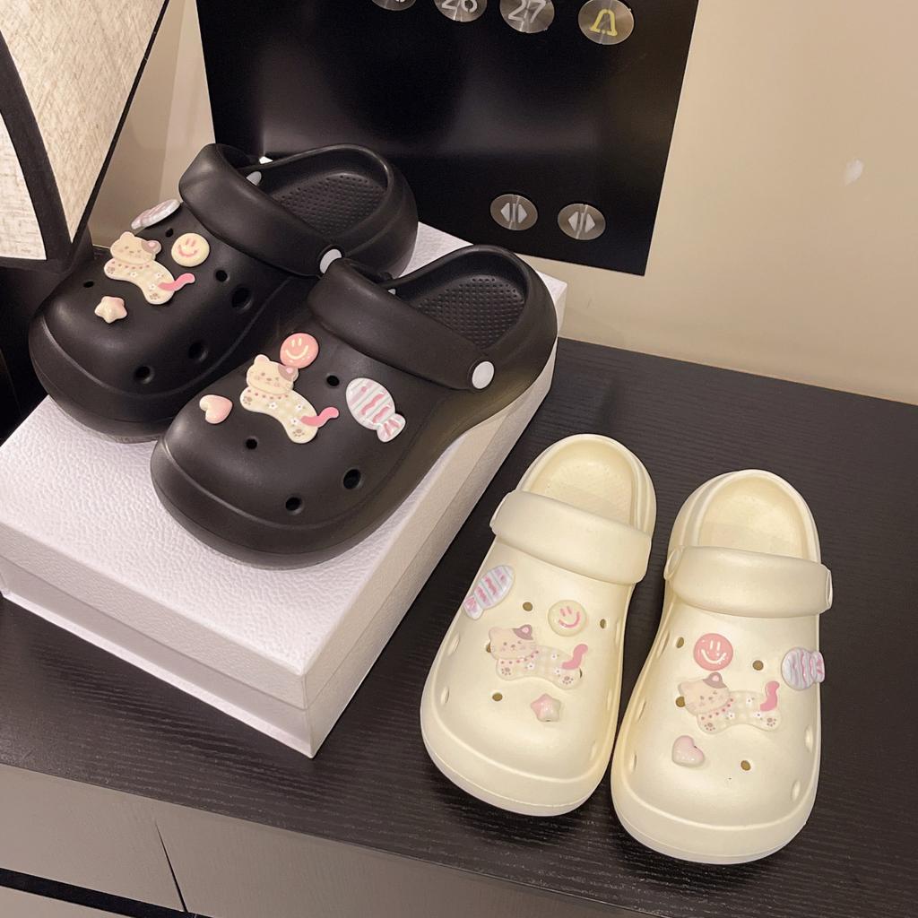 Fashion versatile stepping on shit cartoon cute kitten hole shoes women's 2025 summer new breathable non-slip bag head drag