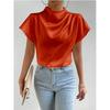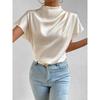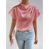 T-shirt z krótkim rękawem i okrągłym dekoltem, plisowany na lewym ramieniu, satynowy top damski