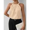 Damska satynowa koszula bez rękawów z dekoltem typu halter, nowość na lato, gładka koszula top