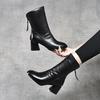 Leather boots women's 2025 autumn and winter round head medium tube thick heel boots European and American style after zipper fashion boots first l