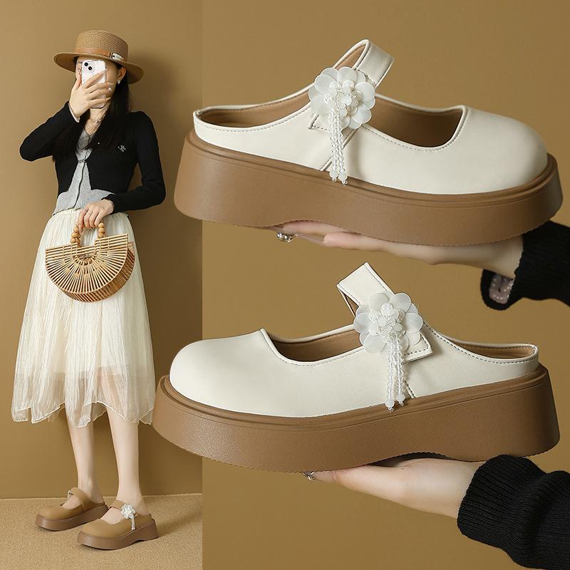 Wieczorem grube podeszwy super-fire jednopedałowe Mary Jane główka torebki półkapcie damskie letnie ubrania 2025 nowe popularne chłodne kapcie